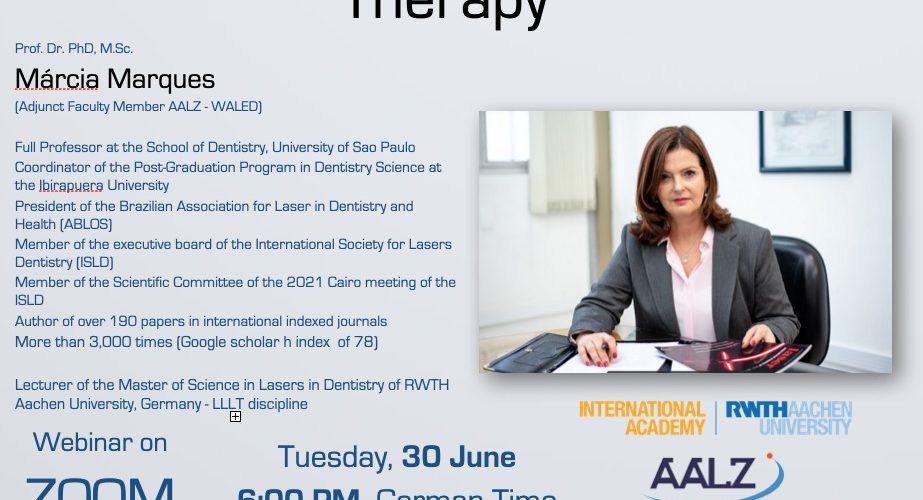 Online Seminar: Marcia Marques – Antimicrobial Photodynamic TherapyThis entry was posted in News Online Seminar waled and tagged Online Seminar on 26. June 2020 by Rene Franzen Rene Franzen is hosting a Zoom meeting: Topic: Marcia Marques – Antimicrobial Photodynamic Therapy Time: Jun 30, 2020 06:00 PM Brussels