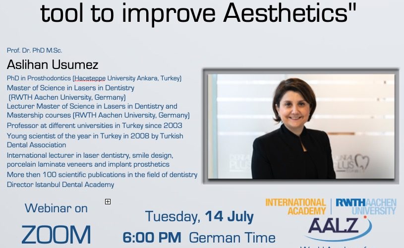 Online Seminar: Aslihan Üsümez – Dental Lasers “An indispensable tool to improve Aesthetics”This entry was posted in News Online Seminar waled and tagged Online Seminar on 10. July 2020 by Rene Franzen Rene Franzen is hosting a Zoom meeting. Topic: Aslihan Üsümez – Dental Lasers “An indispensable tool to improve Aesthetics”Time: Jul 14, 2020 06:00 PM Brussels