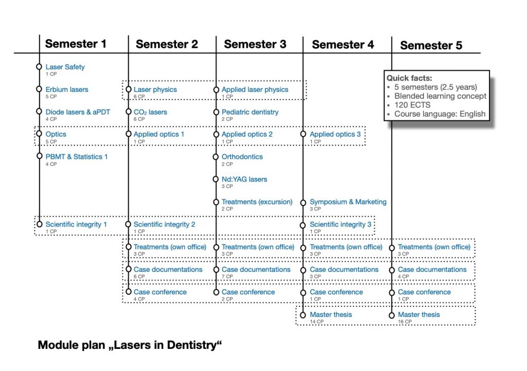 It should be noted that nationally (Austria, Switzerland, Germany) no comparable master program is available, although more than 4,000 dental practices have a laser. The study program with the educational goal of laser application in dentistry is to be offered in English in Vienna, opening it for an international audience.